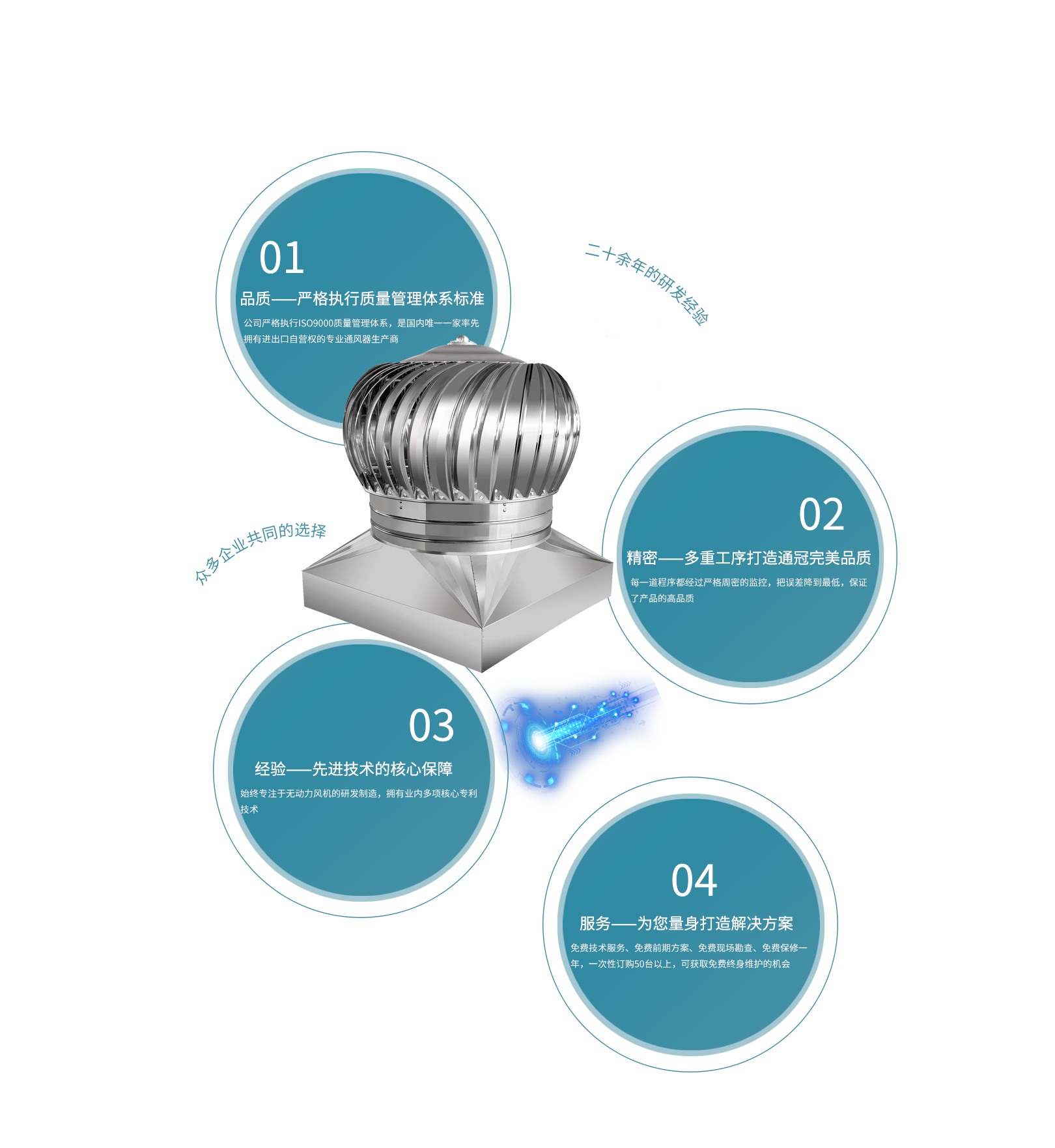 天長市通冠無動力風(fēng)機(jī)有限公司,是集研發(fā)、生產(chǎn)、銷售于一體的,專業(yè)無動力風(fēng)機(jī)生產(chǎn)廠家。公司坐落于205國道南京與揚(yáng)州之間,位于省級高新經(jīng)濟(jì)技術(shù)工業(yè)園,交通便利。“通冠”有著一支技術(shù)精湛、服務(wù)非凡的隊伍。所有一線技術(shù)工人技術(shù)熟練、質(zhì)量意識強(qiáng)。公司嚴(yán)格執(zhí)行ISO9000質(zhì)量管理體系,一貫貫徹“以質(zhì)量為生命”、“以信譽(yù)為根本”、“以服務(wù)為基礎(chǔ)”的理念···[查看詳細(xì)]